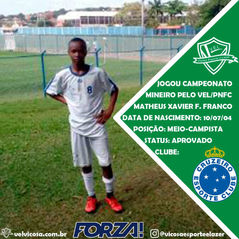 Matheus Xavier - Cruzeiro (Fruto da parceira VEL e Ponte Nova FC);